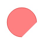 和lineTo一樣,arc也是畫(huà)的路徑,所以我們要在他后面調(diào)用填充或描邊的方法才能顯出圖形(圖中采用了紅色的strokeStyle與半透明紅色的fillStyle)。