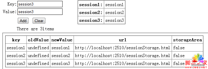 我們在例1中增刪改storage的數(shù)據(jù),會在例2頁面上顯示出來。例2在chrome瀏覽器中運行正常,firefox沒有反應,其他瀏覽器沒有測試。