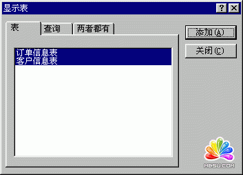 將兩個表“客戶信息表”和“訂單信息表”都選中,單擊“添加”按鈕把它們都添加到“關系”對話框上,單擊“關閉”按鈕把“顯示表”對話框關閉。以后再需要打開它時,只要在“關系”對話框上單擊鼠標右鍵,選擇“顯示表”命令就可以了。