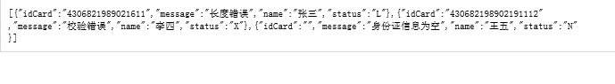 ErrorCondition r2 = new ErrorCondition("李四", "430682198902191112","X", "校驗錯誤");