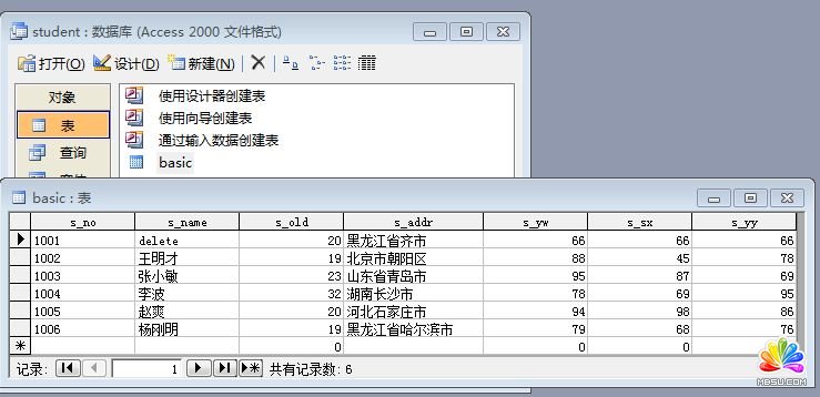 例如有如下的Access數(shù)據(jù)庫student,表basic,以及6條記錄,現(xiàn)在通過幾種方式在Jsp中將他們的數(shù)據(jù)顯示出來。如圖所示: