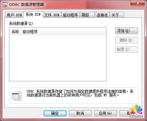 1、對于這種方式,首先要建立ODBC數(shù)據(jù)源,我的系統(tǒng)是Win7系統(tǒng),所以依次選擇“控制面板----管理工具----數(shù)據(jù)源(ODBC)”,打開數(shù)據(jù)源管理器,如圖所示: