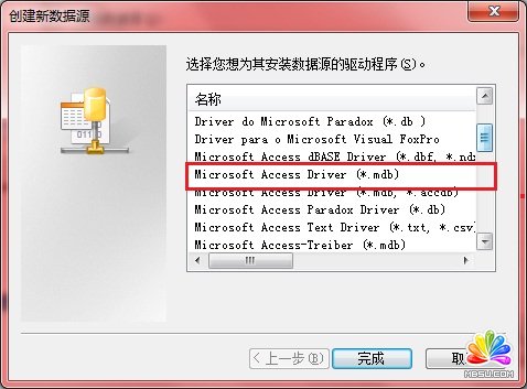 2、在“系統(tǒng)DSN”選項(xiàng)卡中,單擊“添加”按鈕,打開創(chuàng)建數(shù)據(jù)源對話框,選擇Access數(shù)據(jù)庫的驅(qū)動程序“Microsoft Access Driver(*.mdb)”如圖所示: