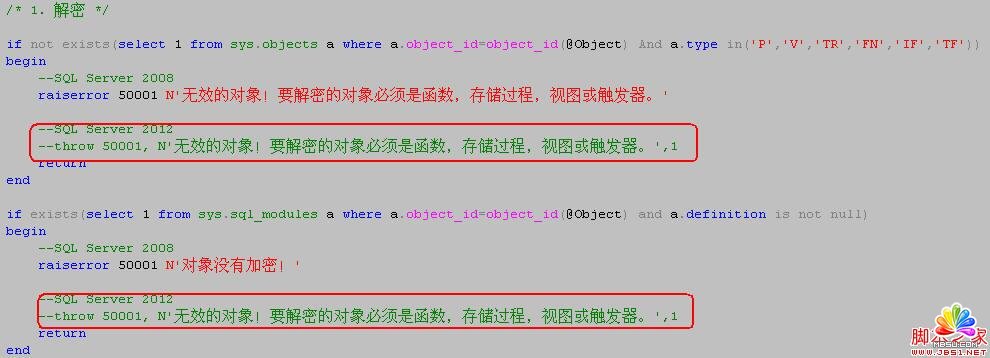 --throw 50001, N'無效的加密對(duì)象!加密對(duì)象必須是函數(shù),存儲(chǔ)過程,視圖或觸發(fā)器。',1