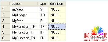 當(dāng)執(zhí)行完了上面的1-6步驟的腳本,我們通過查詢系統(tǒng)視圖sys.sql_modules,可以看到未加密前的定義信息:
