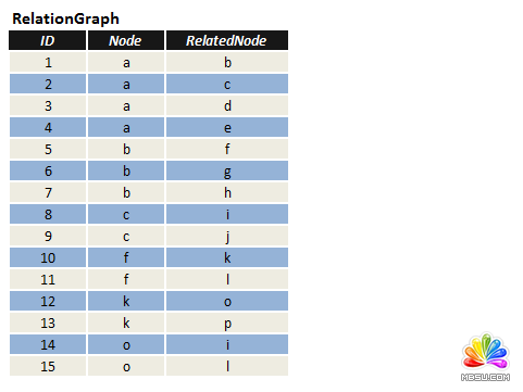在表RelationGraph中,有三個字段(ID,Node,RelatedNode),其中Node和RelatedNode兩個字段描述兩個節(jié)點的連接關系;現(xiàn)在要求,找出從節(jié)點"p"至節(jié)點"j",最短路徑(即經過的節(jié)點最少)。