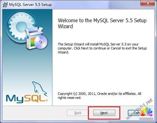 1、首先單擊MySQL5.5.21的安裝文件,出現該數據庫的安裝向導界面,單擊“next”繼續安裝,如圖所示: