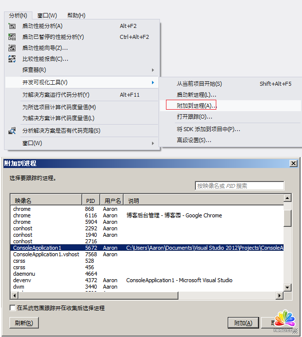 下面說說如何通過VS2012來對獨立運行的程序進行性能分析,其實很簡單,就下面這個圖就搞定了,大家都懂的: