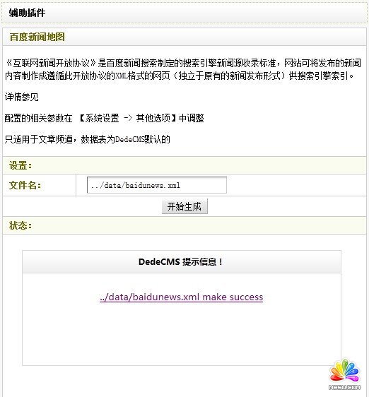 點(diǎn)擊“開始生成”按鈕,即可生成百度新聞xml文件。