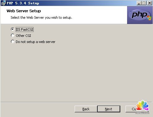 之后需要選擇web服務器的安裝,這里選擇我們先前安裝的IIS fastcgi(如圖8所示)