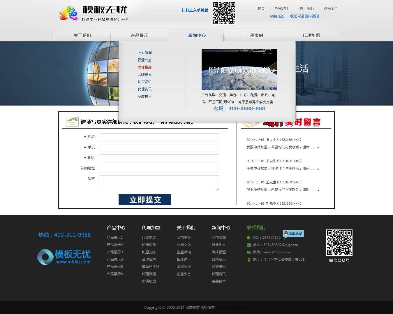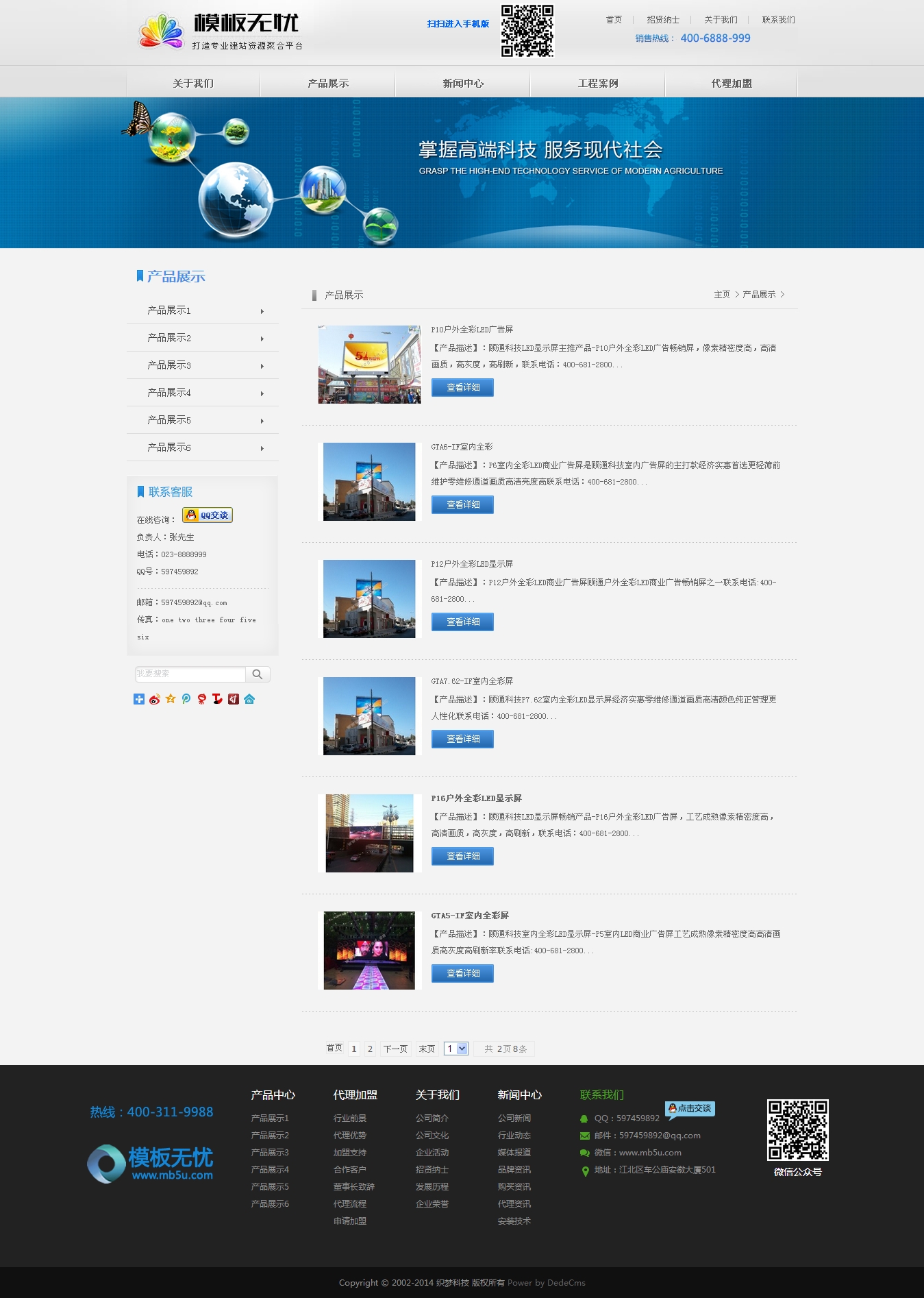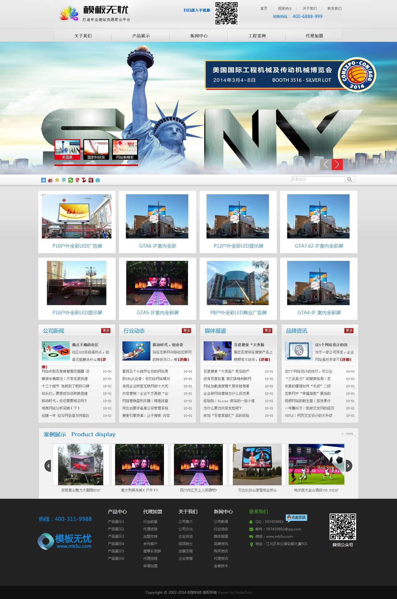 dedecms(織夢內核)開發的機械設備,電子產品,通訊產品,醫療器械等產品展示類網站模板,網站源碼非常簡介大氣,圖片展示效果非常突出,由織夢dede內核搭建,已經設置好欄目,各種JS特效都已實現,調用好數據,方便您使用。此模板最大的亮點就是帶有手機版,和PC端共用同一后臺,而且設置好了訪問路徑,當用手機訪問同一域名時自動進入手機版。具體可以瀏覽演示站。手機站訪問路徑:http://域名/wap