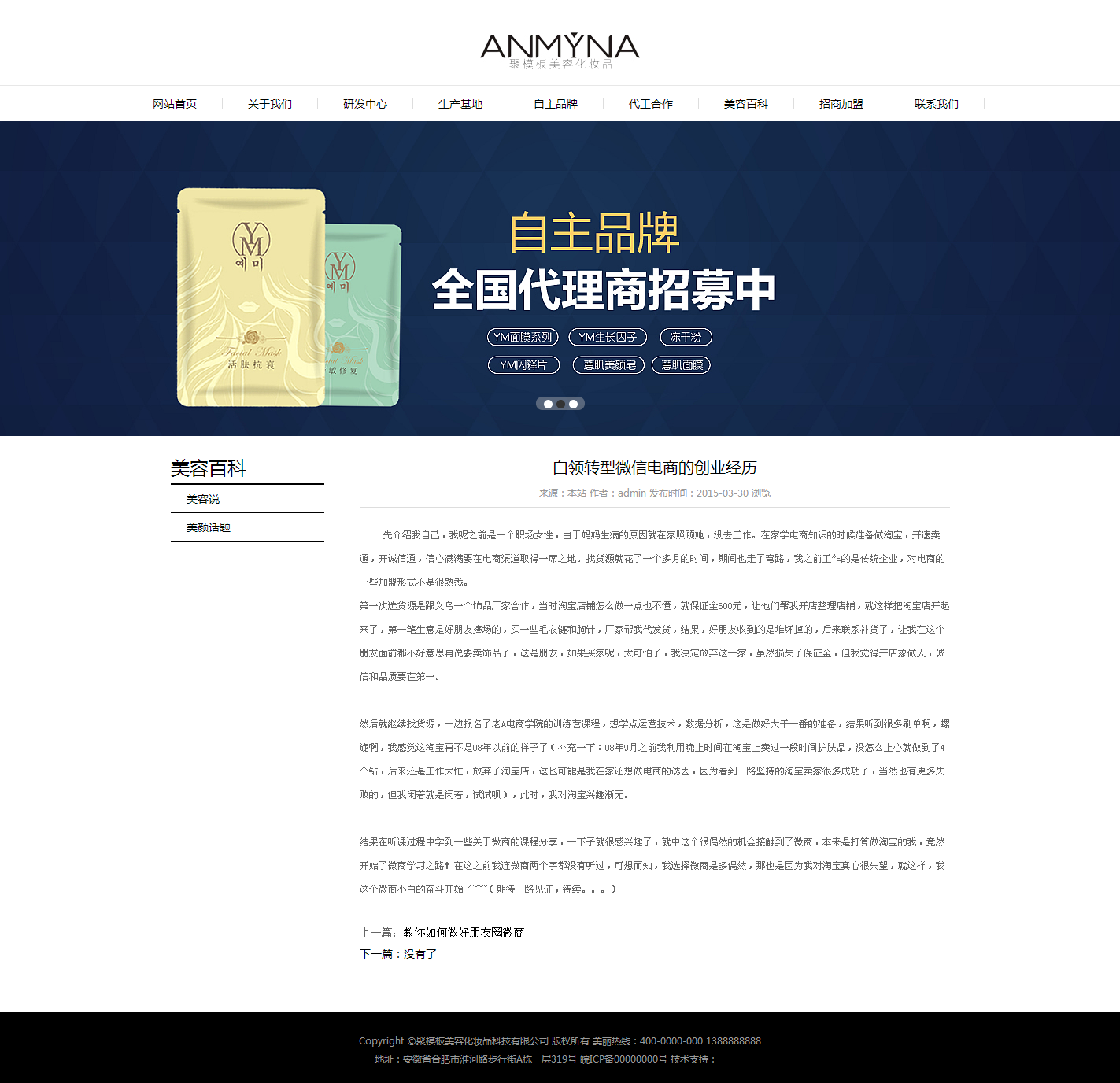 織夢模板- 織夢面膜化妝品代理加盟公司網(wǎng)站模板(微商必備)