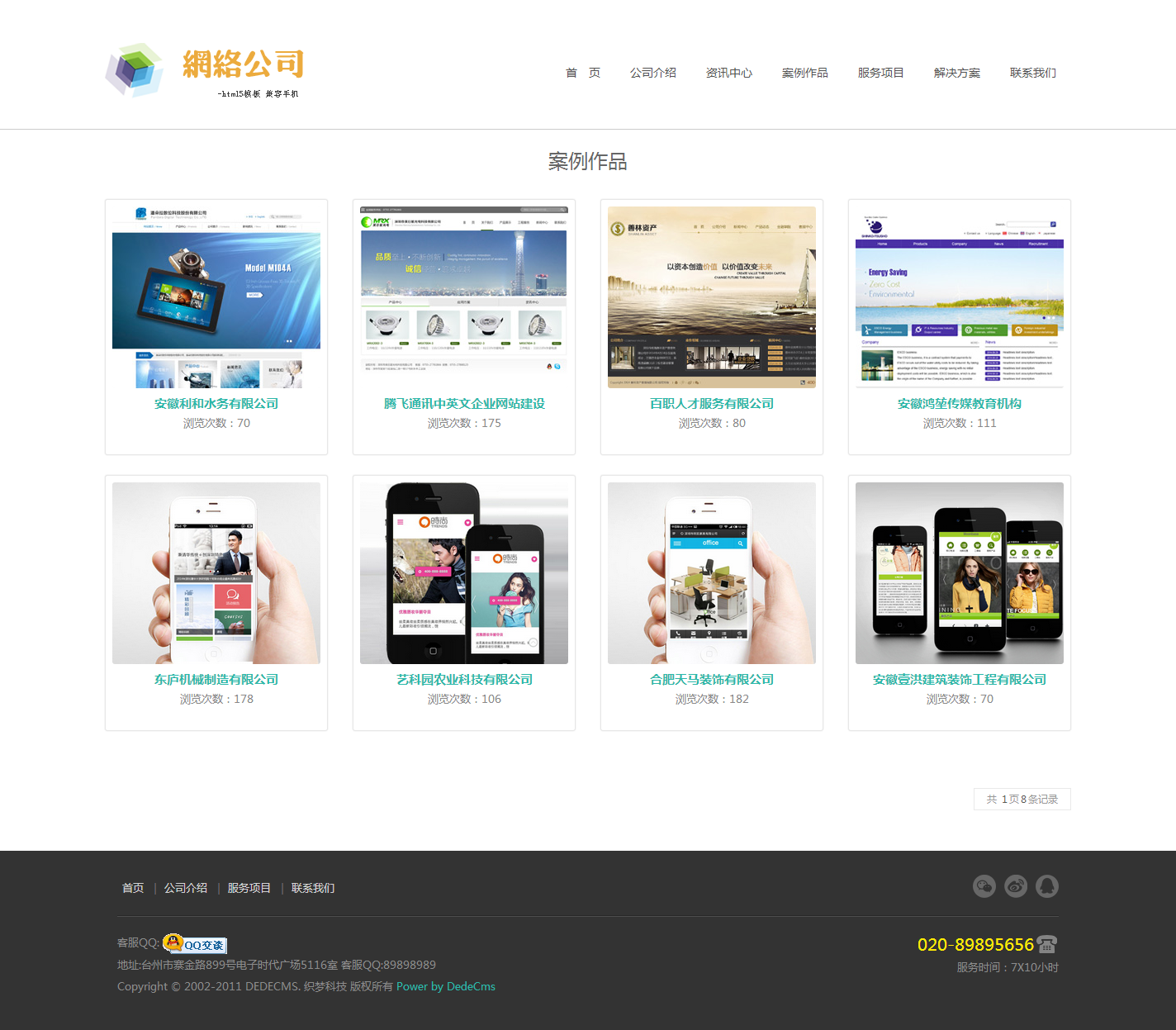 織夢最新內核開發的HTML5網絡公司企業網站模板,打開超炫,假一罰十,DEDE5.5內核以上都可以使用;附帶測試數據;兼容手機。