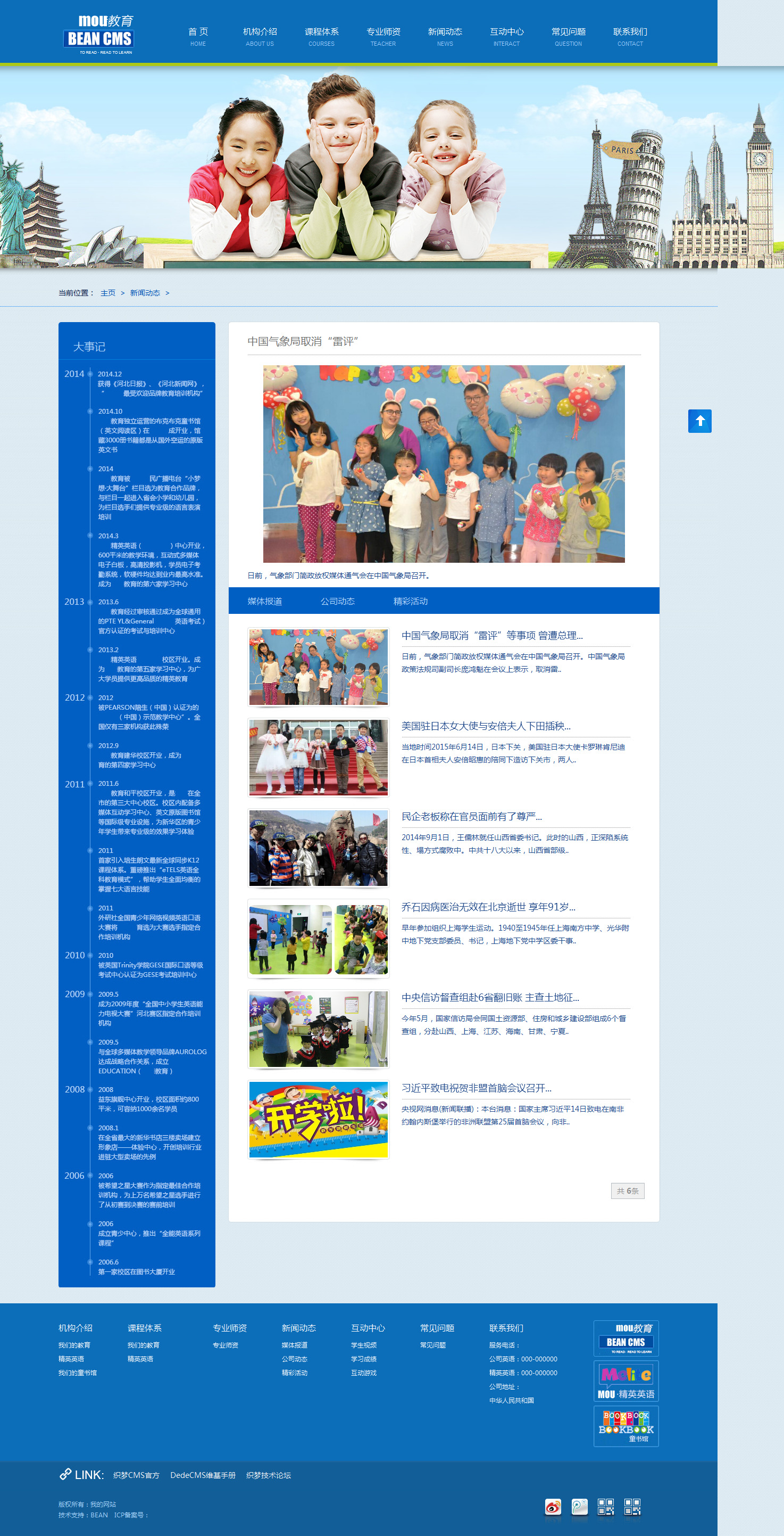 織夢html5兒童早教教育輔導培訓機構學校企業網站模板是織夢5.7utf編碼的,網站源碼非常簡介大氣,圖片展示效果非常突出。
