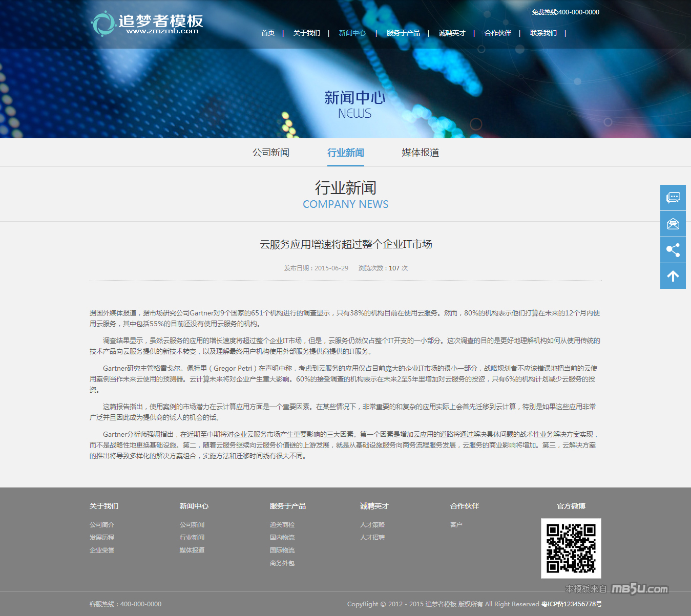 dede織夢投資基金融資理財服務行業企業通用網站模板,藍底色風格大氣,頁面干凈,整體簡單,幾乎適合所有的金融,服務行業使用,整站藍色搭配,干凈大方.此款織夢模板采用UFT-8內核制作,該模板是整站源碼,帶測試數據,安裝非常方便,只需要在后臺更改欄目為自己的欄目,就可以輕松搭建屬于自己的網站