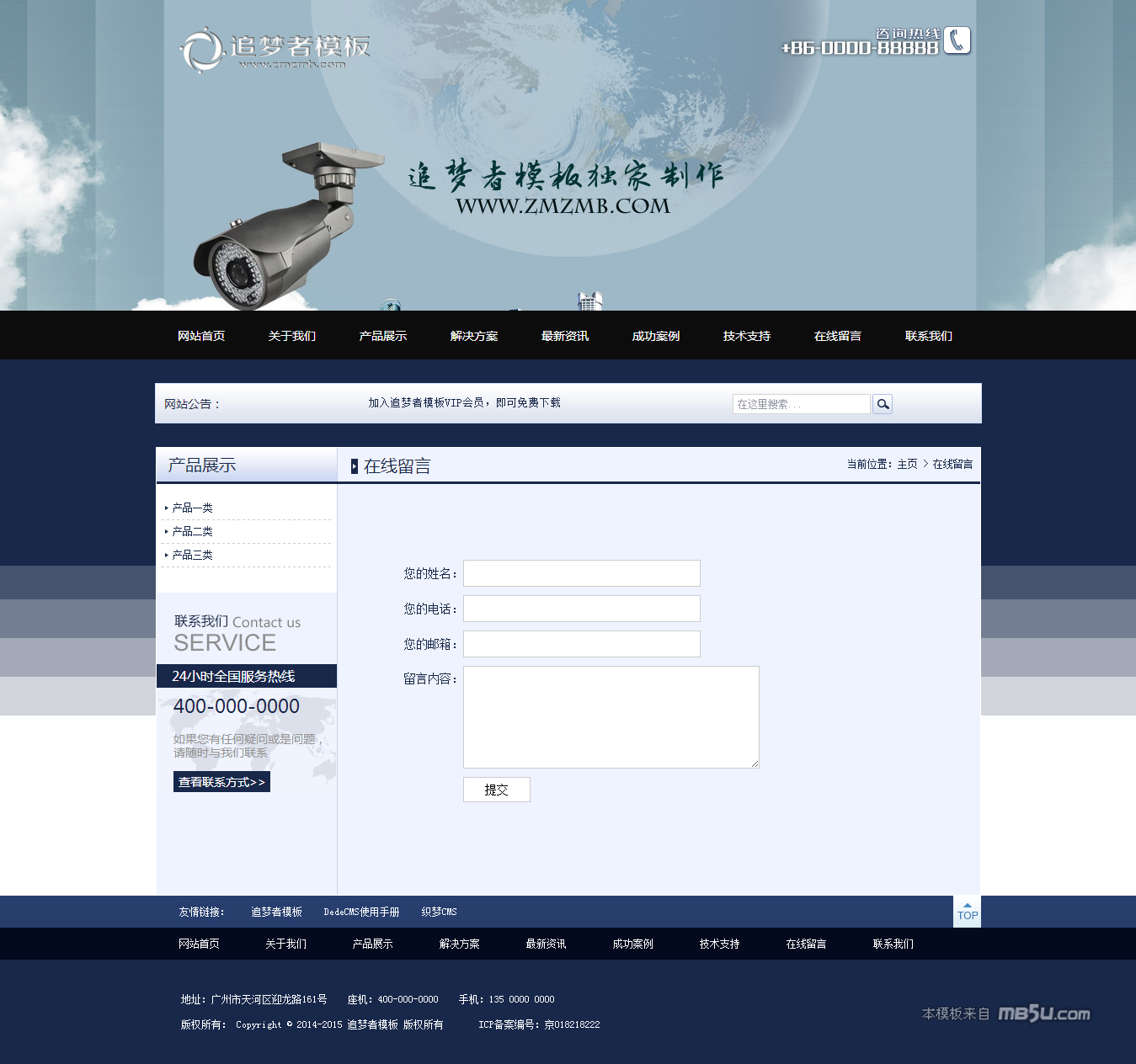 織夢監(jiān)控設備,加工行業(yè)企業(yè)通用網(wǎng)站模板,整體配色采用了深藍色 ,頁面干凈,代碼已進行簡化,有利于eso優(yōu)化。模板基于DEDE CMS 最新版本5.7 UTF-8設計,5.5以上的版本應該都能使用。如果是GBK請自行轉(zhuǎn)換編碼。該模板是整站源碼,帶測試數(shù)據(jù),安裝說明,安裝非常方便,只需要在后臺更改欄目為自己的信息就能輕松搭建自己的網(wǎng)站。