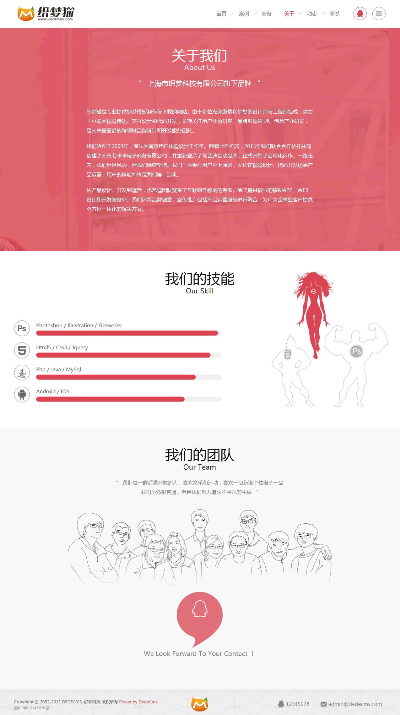 本模板基于DEDECms 5.7 UTF-8設計,需要GBK版本的請自己轉換或聯系作者轉換。