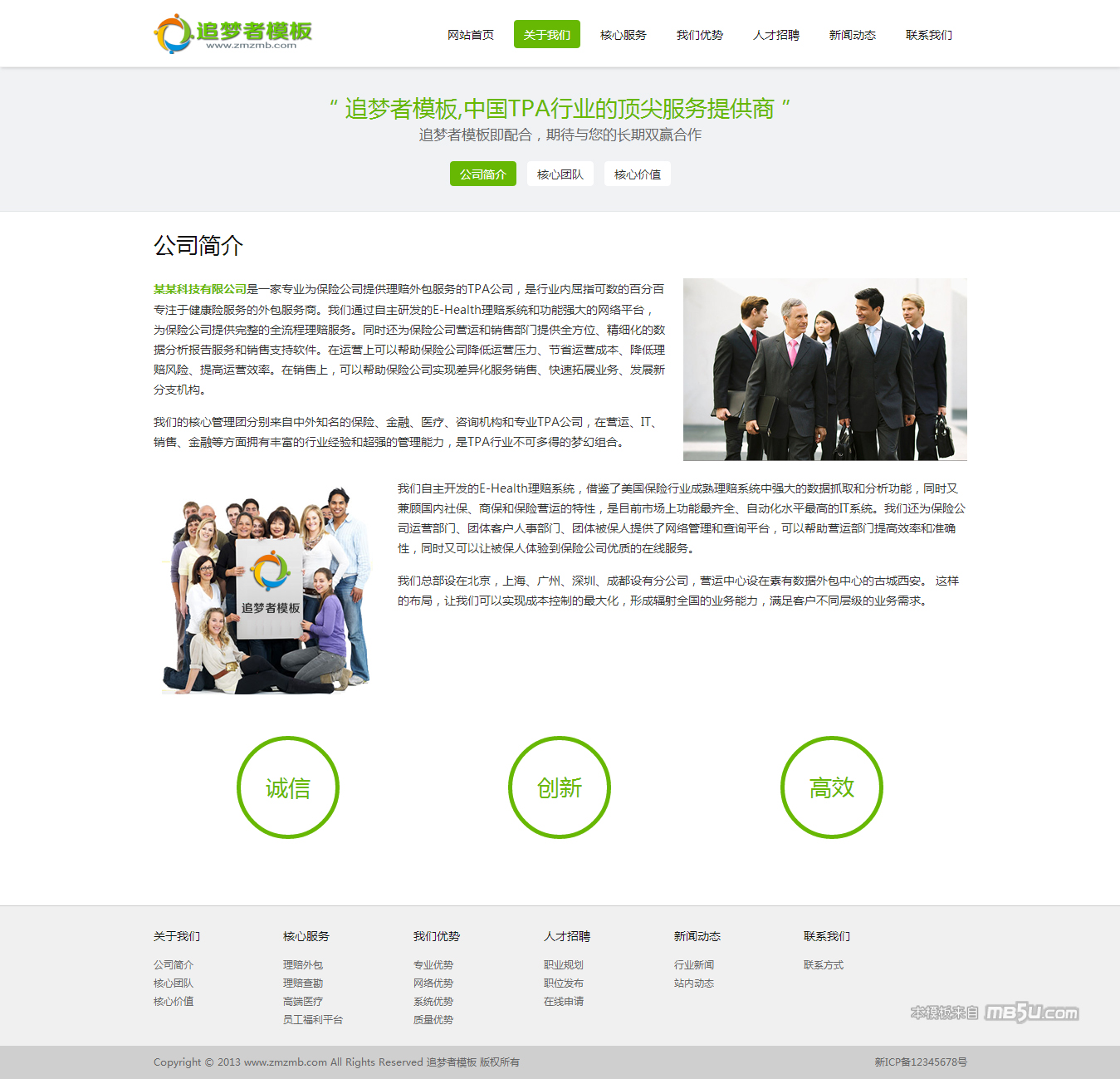 織夢簡潔綠色保險理賠外包服務企業網站模板,適合保險,賠償,服務外包行業企業公司網站使用,整體配色采用了青綠色,布局簡單,干凈,代碼非常的精簡,適合ESO優化。