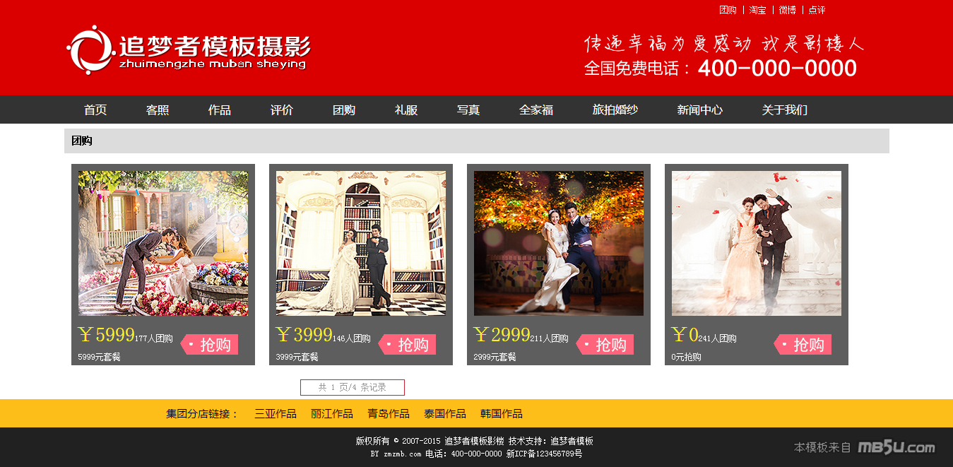 織夢(mèng)高端婚紗/影樓/攝影工作室網(wǎng)站模板 帶手機(jī)WAP站 同步PC站數(shù)據(jù)