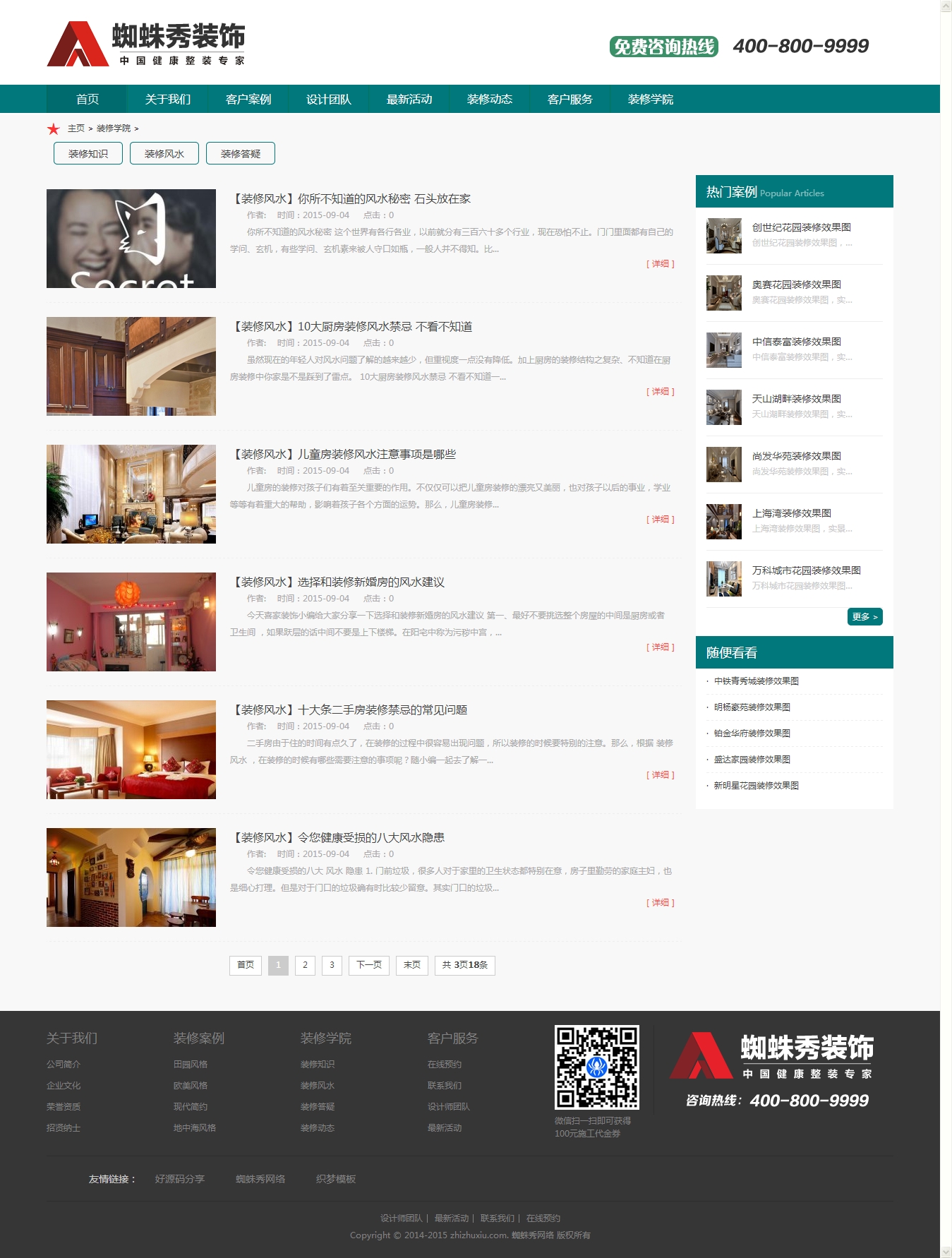 dedecms內核開發的裝飾設計,室內設計,裝修設計,裝修公司,裝飾公司模板。本模板好多地方使用了二次開發,功能比較完善,添加了測試資料,按照安裝說明安裝之后從后臺還原數據即可看到和效果圖一模一樣的網站,功能完整無錯。