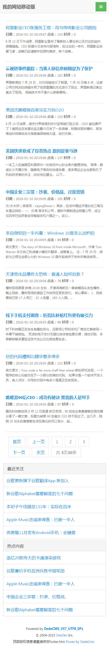 藍(lán)白色文章教程類網(wǎng)站織夢模板(帶手機(jī)版)