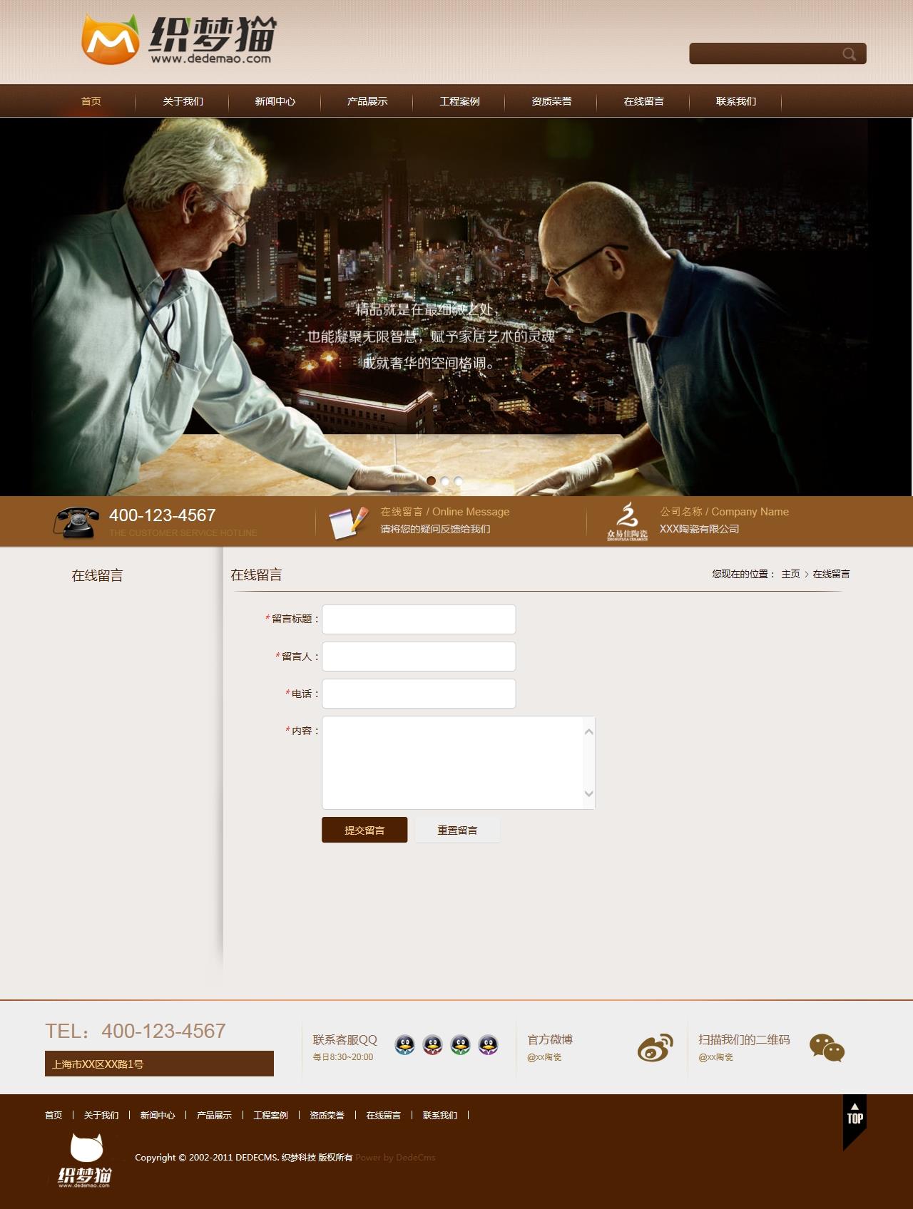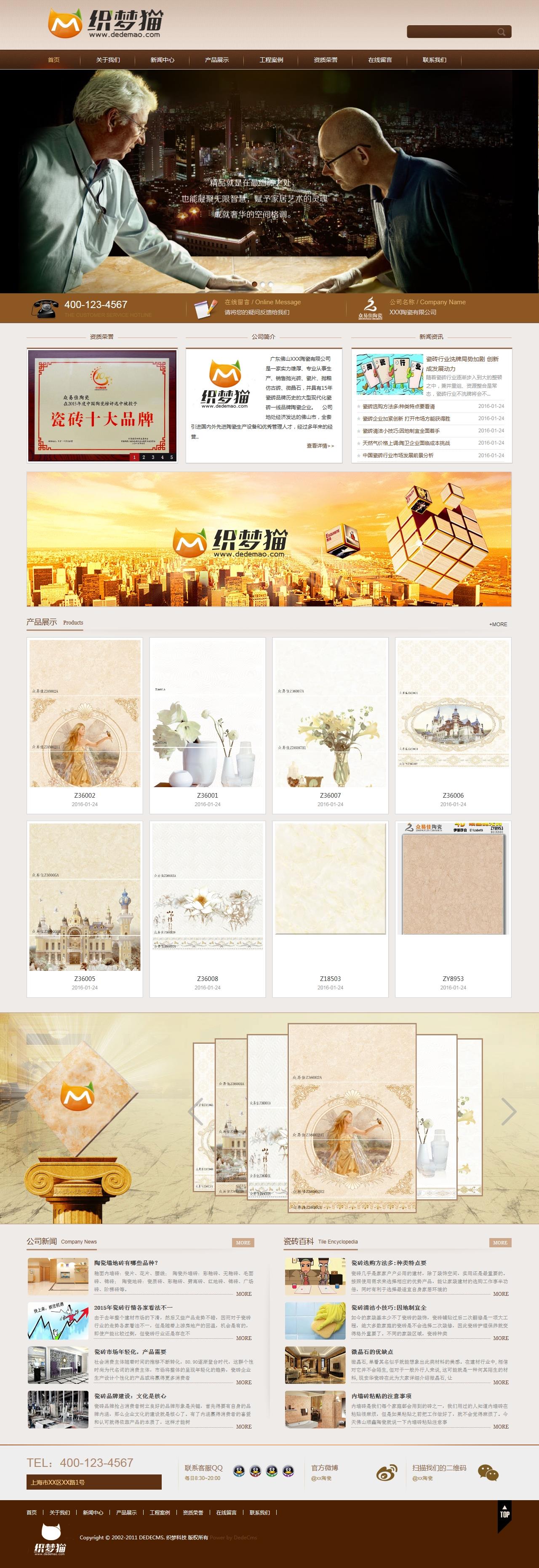 棕色陶瓷類企業通用織夢模板(帶手機版),測試完整無錯,兼容主流瀏覽器。