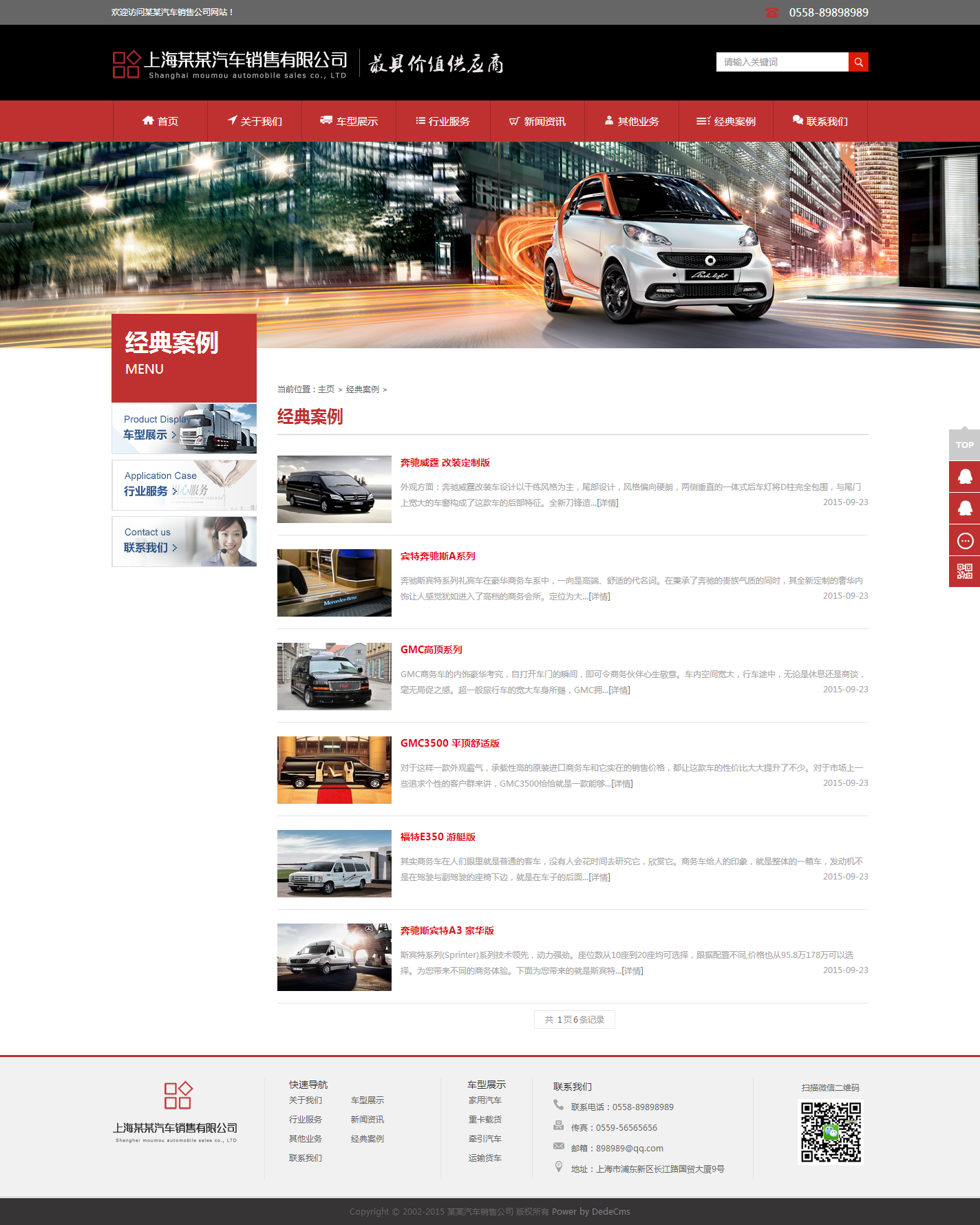 dedecms汽車銷售公司織夢企業模板,首頁圖片帶滾動特效,導航下拉菜單,完美兼容IE7+、Firefox、Chrome、360瀏覽器等主流瀏覽器。