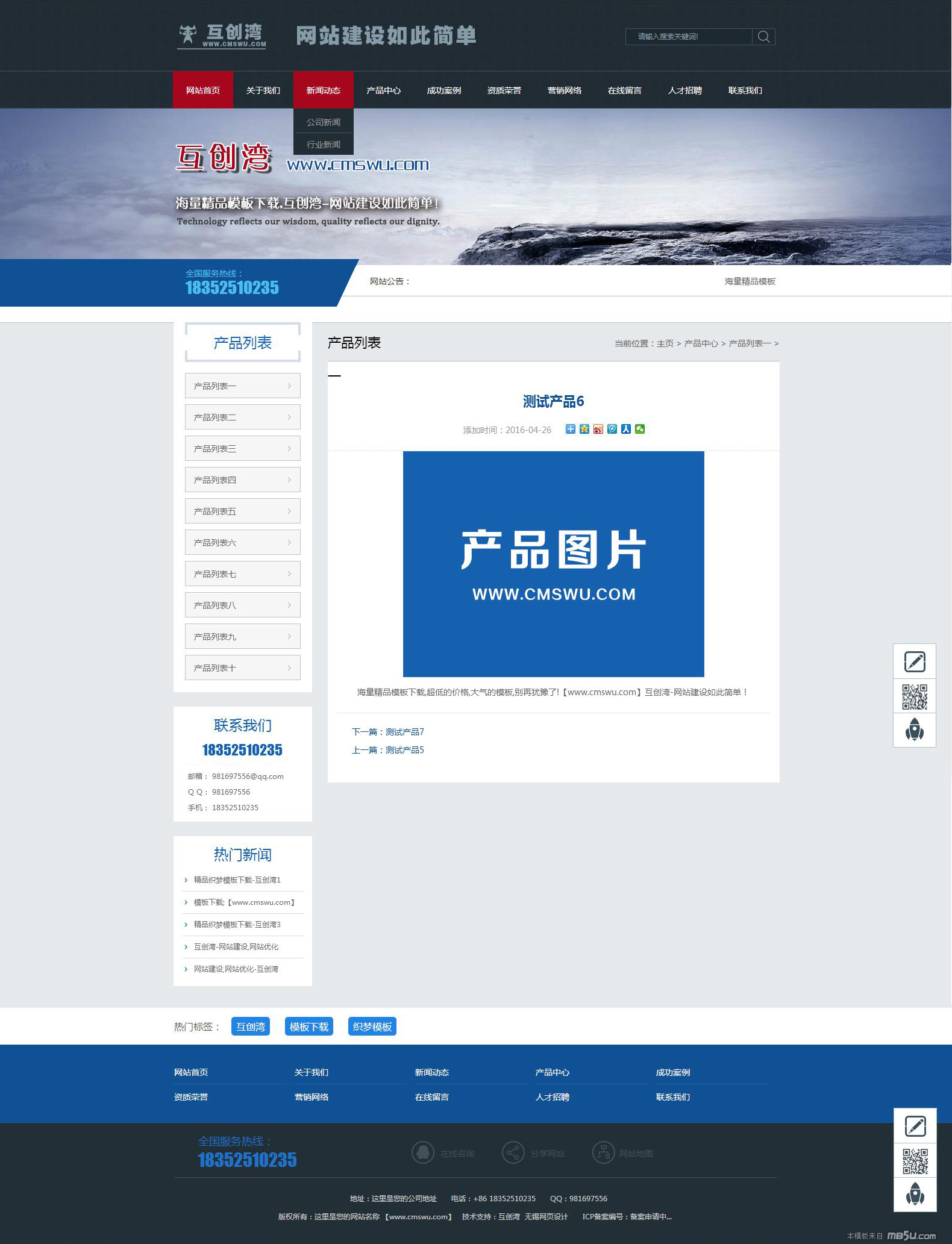此套模板是一套PC+獨立手機端的的企業模板,相比國外的響應式模板這種組合的網站結構還是挺受我們國人的喜愛的價格:139 元 點擊:123織夢cms大氣重型機械設備公司