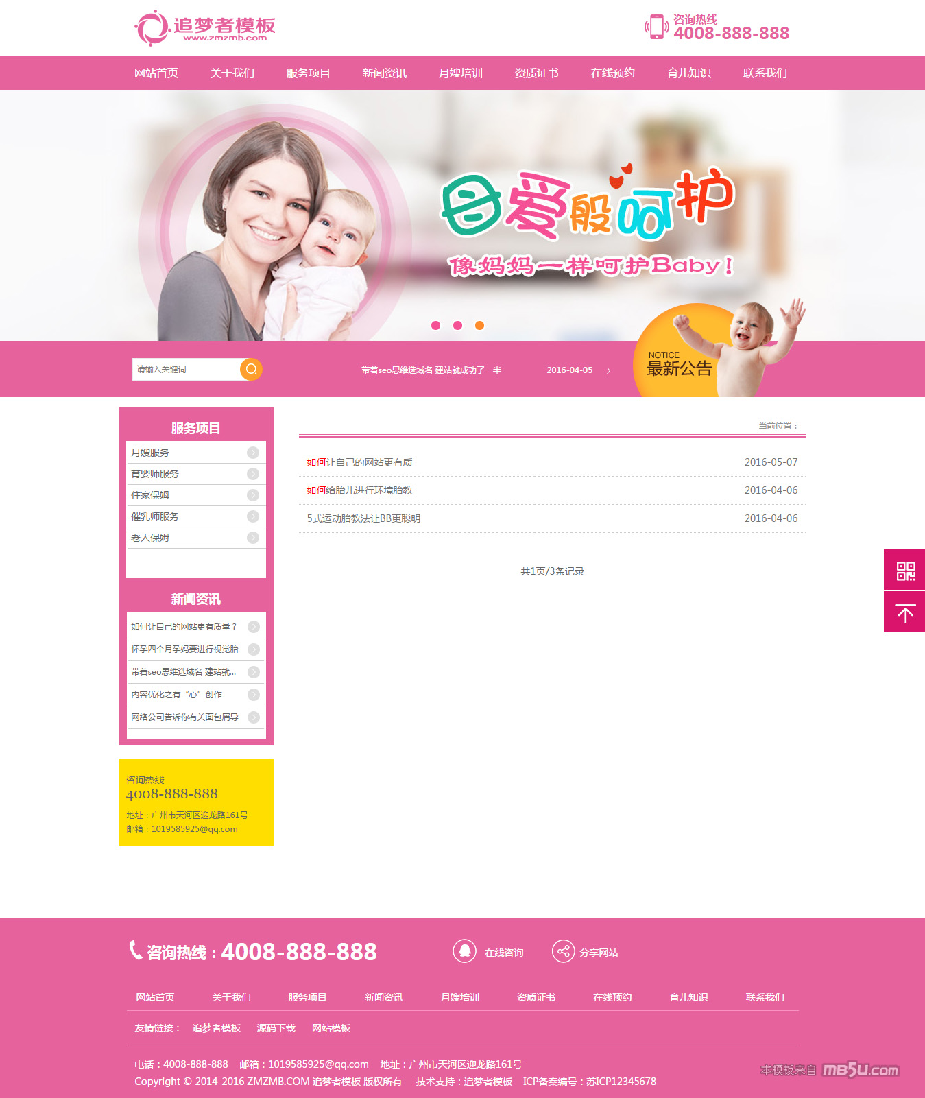 織夢育嬰家政保姆服務網站模板