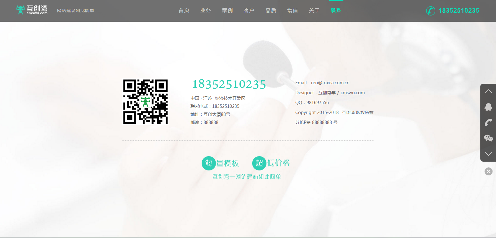 5.后臺可直接修改聯系電話、在線QQ、聯系地址、郵箱等。