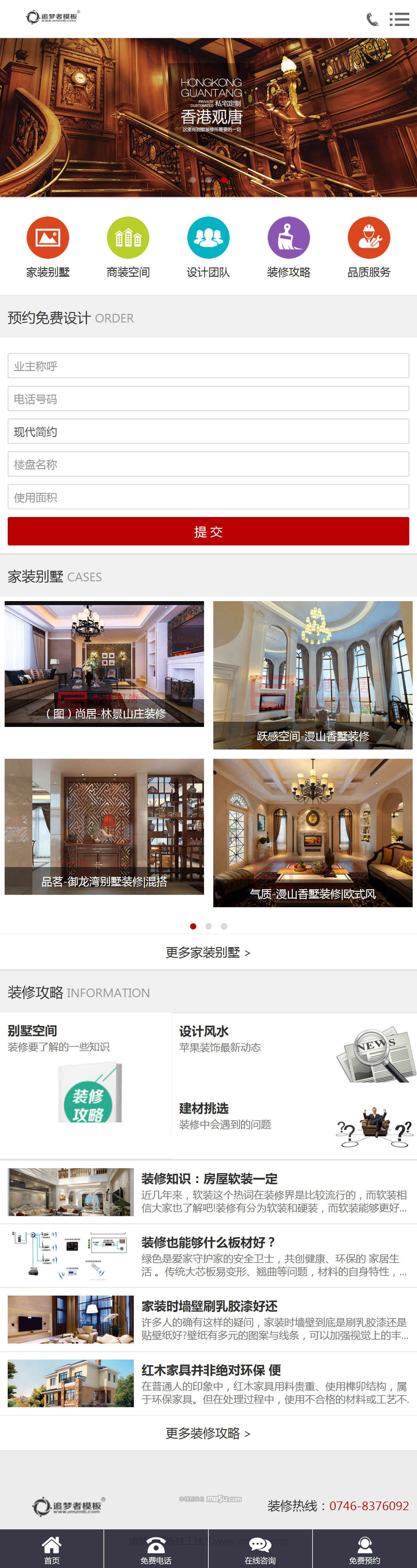 高端裝飾網站裝修公司裝修行業網站通用織夢模板(帶手機版),適合裝修公司、裝飾企業等行業使用。,整體布局大氣清晰干凈,不管是網站界面設計還是特效技術層面都做到不錯的了,能夠展現 出你的實力。模板附帶測試數據,帶安裝說明。