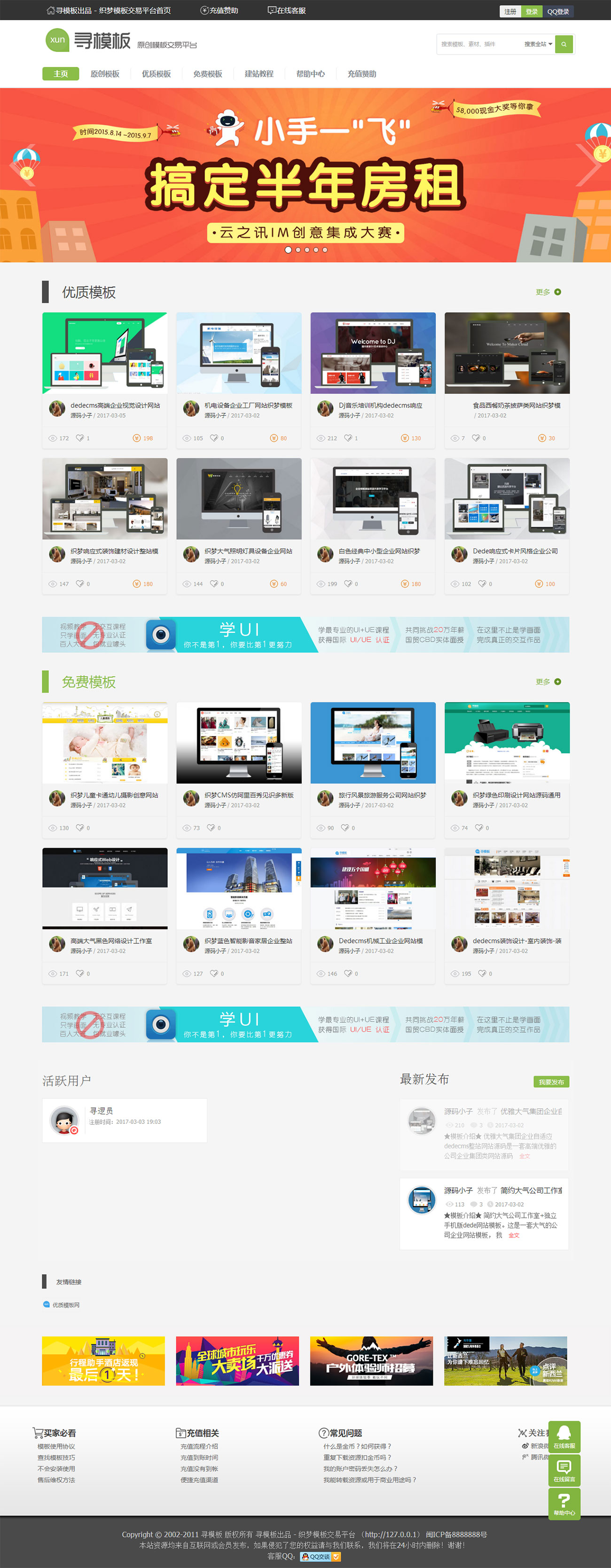 網頁模板/視頻素材/圖片分享/源碼商城二次開發站長交易平臺