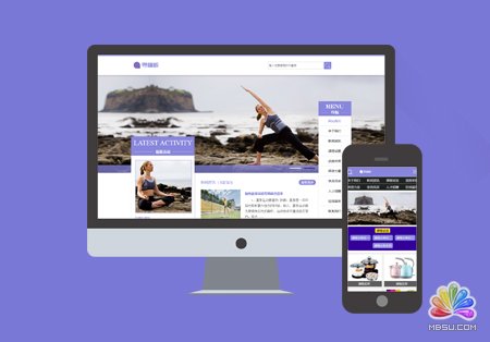 紫色大氣養身健身瑜伽培訓類網站織夢模板(帶手機版)