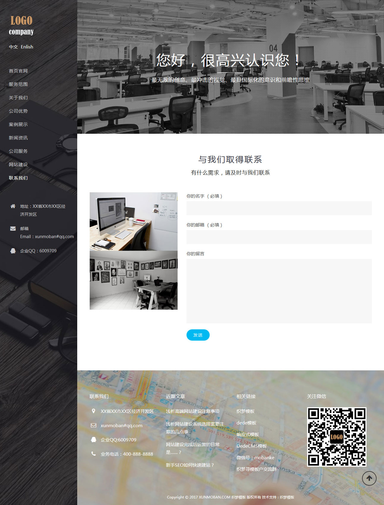 這是一款適用于網站建設網絡公司工作室類的中英雙語響應式織夢網站模板,高端大氣,布局采用左右分欄式設計,科技感十足。整體采用響應式框架設計,能自適應不同的移動終端,電腦、平板、手機三位一體,后臺設有中英文欄目,前臺界面實現了中英雙語的切換。
