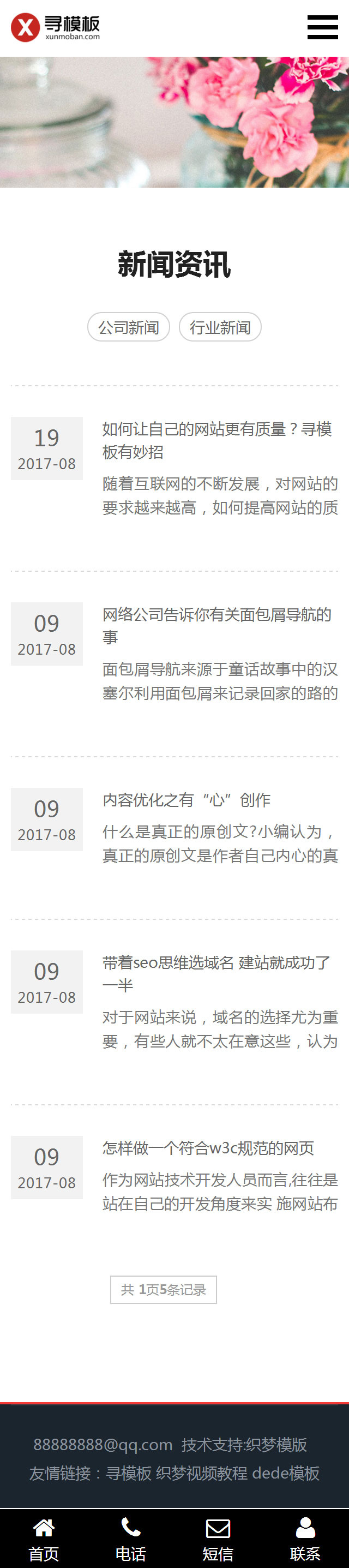 模板是采用自適應設計,所以不需要單獨搭建手機端,PC、平板、手機訪問自動調整布局大小。
