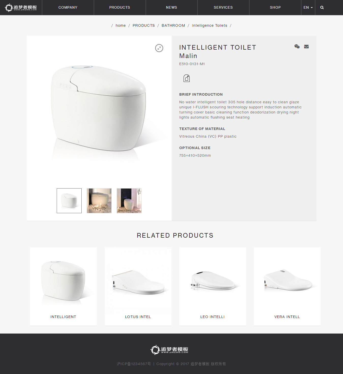 織夢黑色高端html5響應式產品展示類英漢雙語企業網站模板