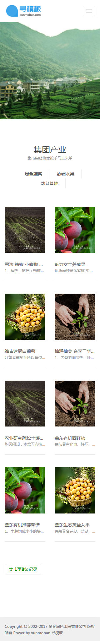 織夢模板-響應(yīng)式綠色果蔬田園網(wǎng)站織夢模板