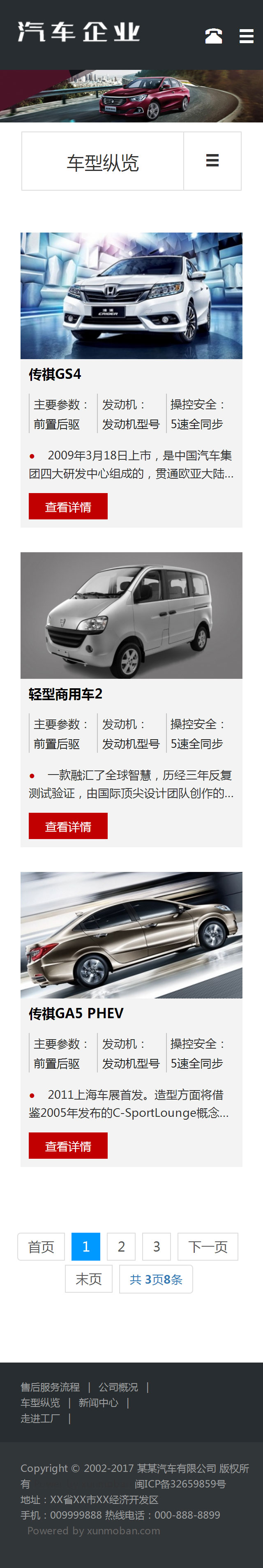 響應式汽車銷售展示服務類織夢模板,該模板大氣整潔,頁面布局豐富,顏色配色非常的炫酷,非常符合汽車類行業的企業使用,手機端采用自適應布局,無需單獨管理,使用方便!