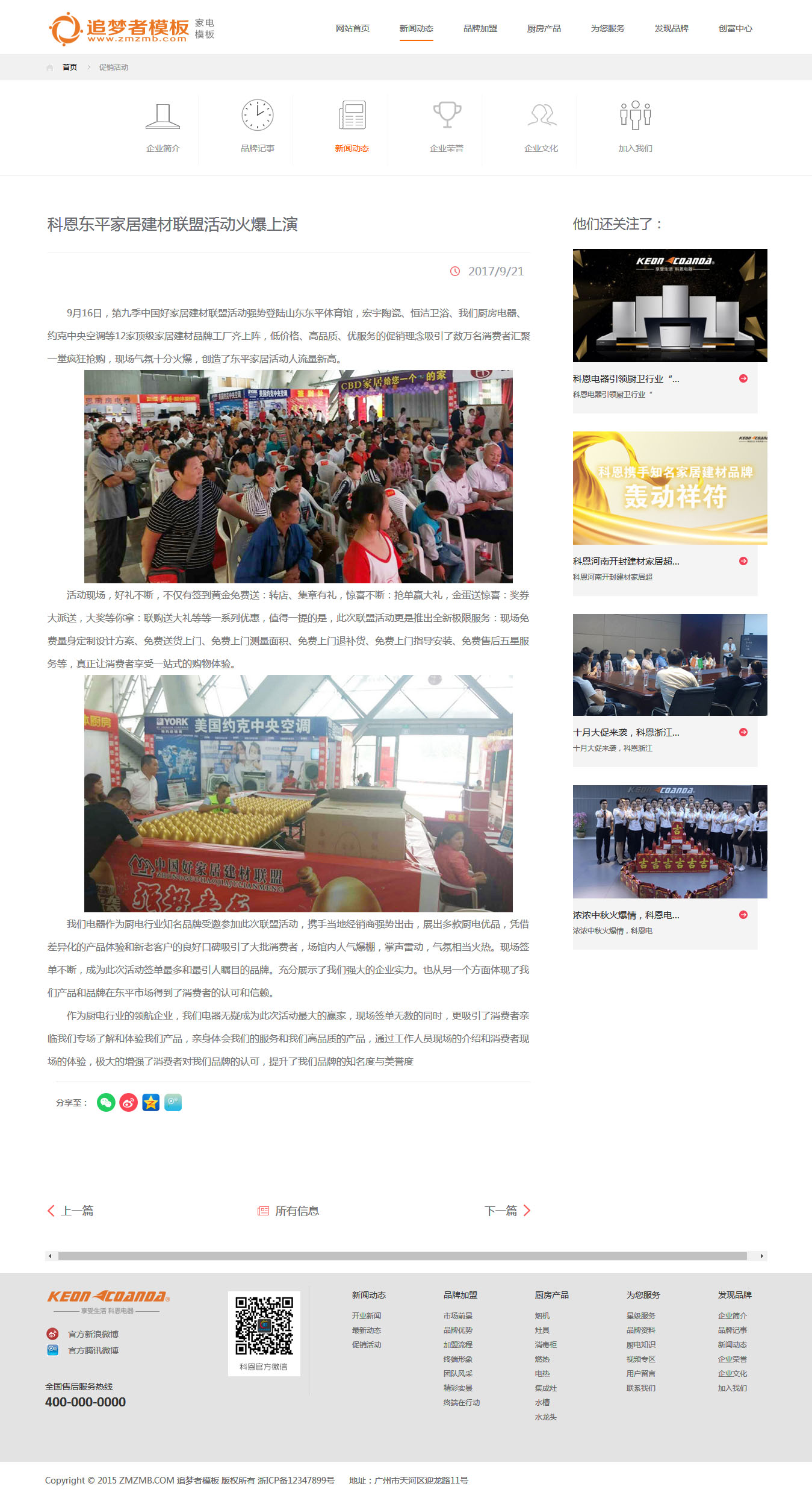 dede家用電器廚房電器類產品展示網站模板(帶手機版) ,適合各類家電產品行業使用,配套手機版解決了移動端流量流失的大難題。整體布局大氣清晰干凈,大氣。模板附帶測試數據,帶安裝說明。