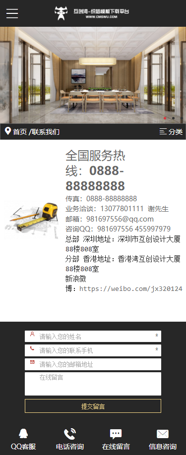 營銷型深灰色家裝裝修設計公司企業官網織夢模板+wap手機端-互創灣出品