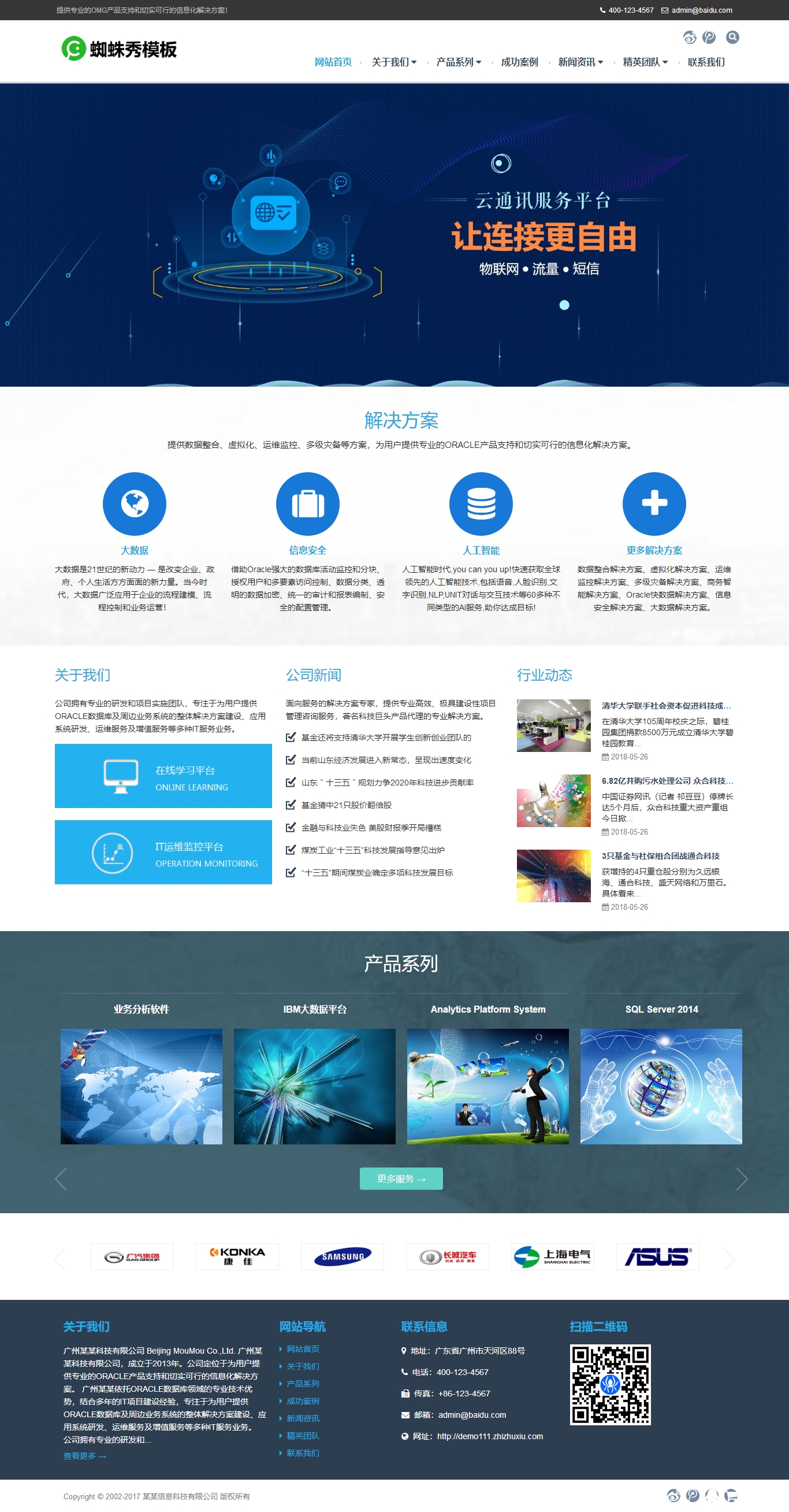 dedecms內核開發的人工智能、大數據分析、互聯網安全、研發公司類自適應整站源碼,網站源碼非常簡介大氣,圖片展示效果非常突出,由織夢dede內核搭建,已經設置好欄目,各種JS特效都已實現,調用好數據,方便您使用。