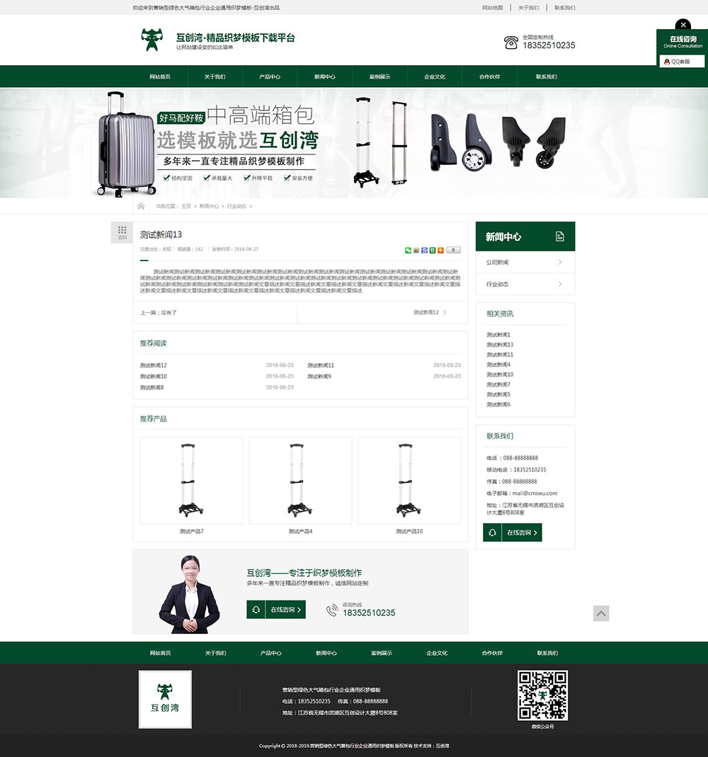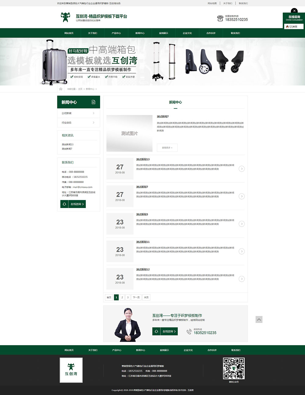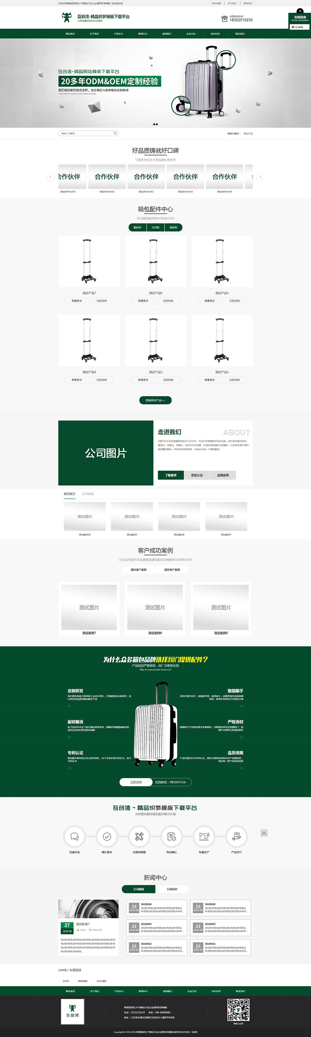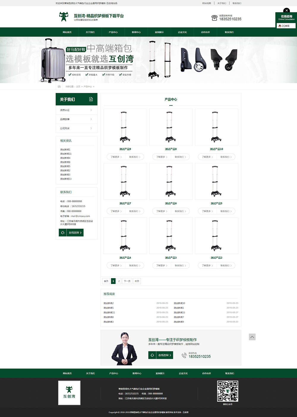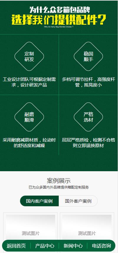 營銷型綠色大氣箱包行業企業通用織夢模板+wap手機端同步-互創灣出品