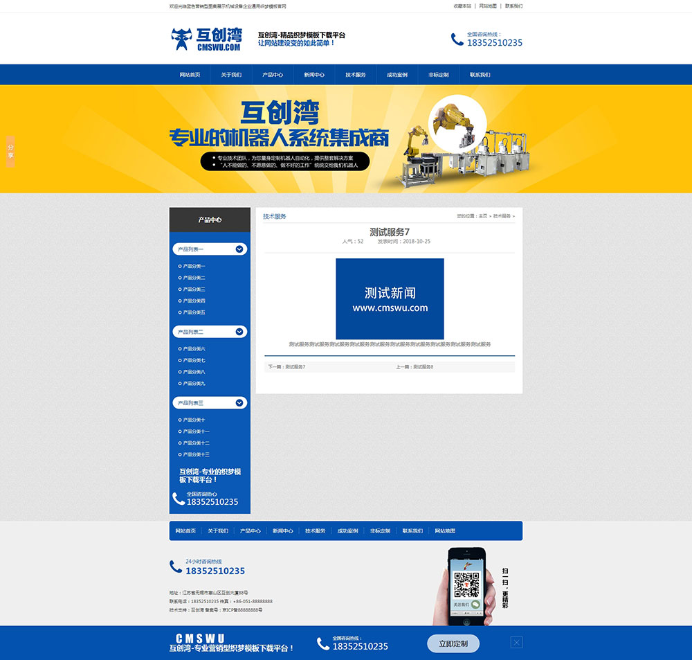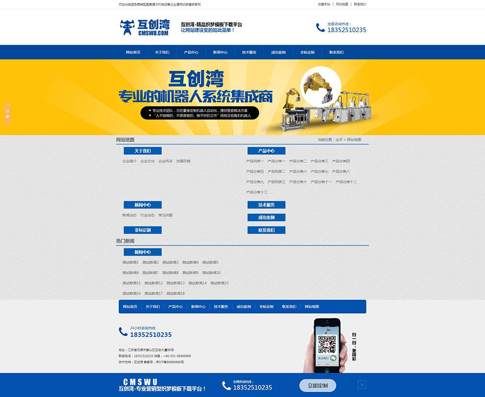 藍色營銷型圖集展示機械設備企業通用織夢模板+wap手機端同步-互創灣模板