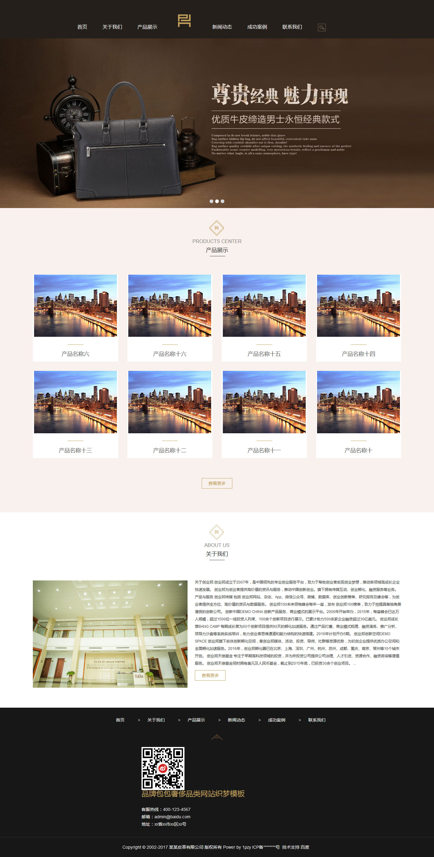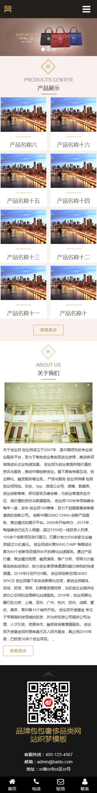 響應式品牌包包奢侈品類網站織夢模板,測試完整無錯,兼容主流瀏覽器。支持后臺直接修改網站信息,移動和PC端同一個后臺,數據即時同步,簡單實用。本套模板為UTF8需要GBK可在本站查看編碼轉換教程。