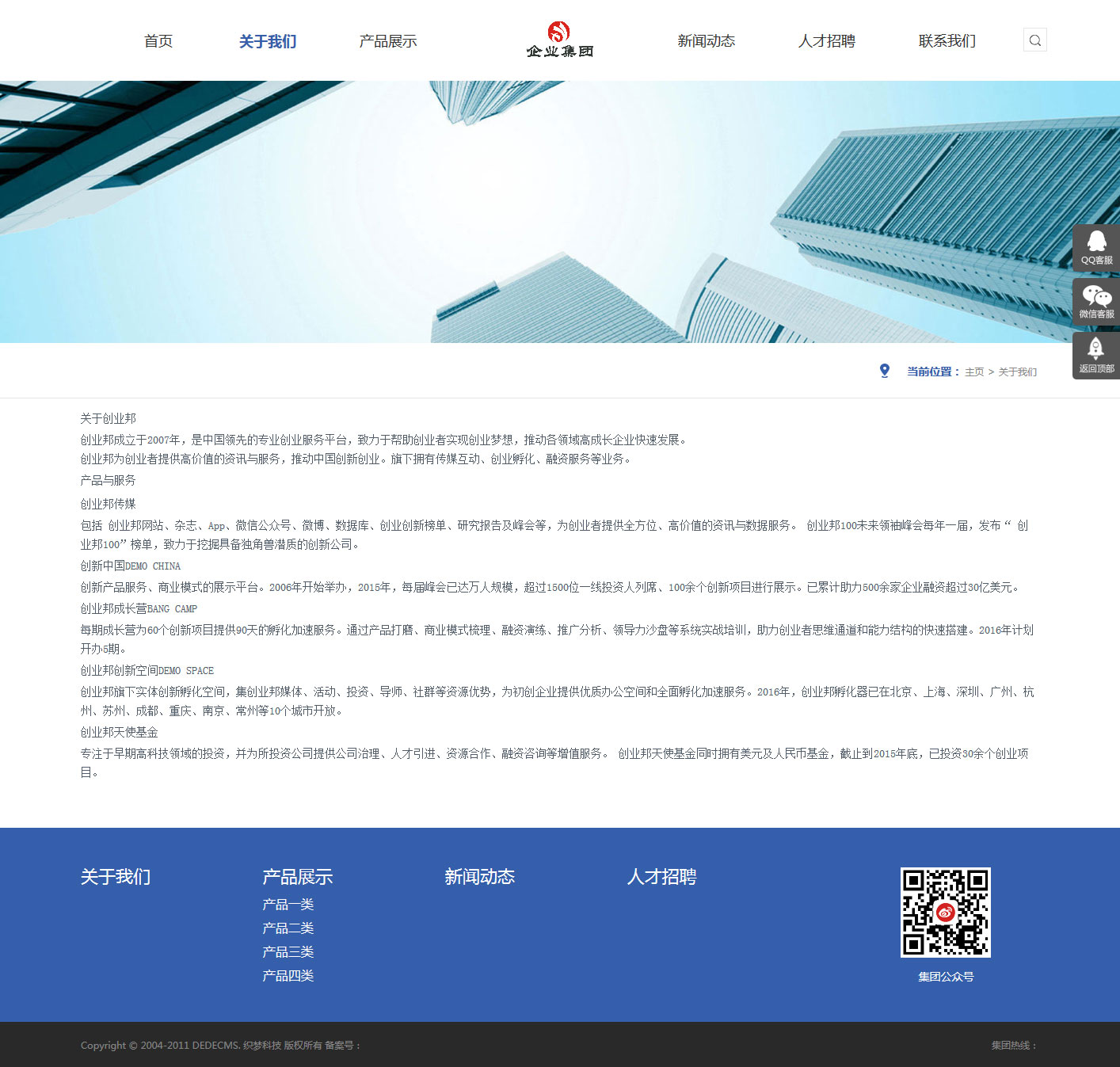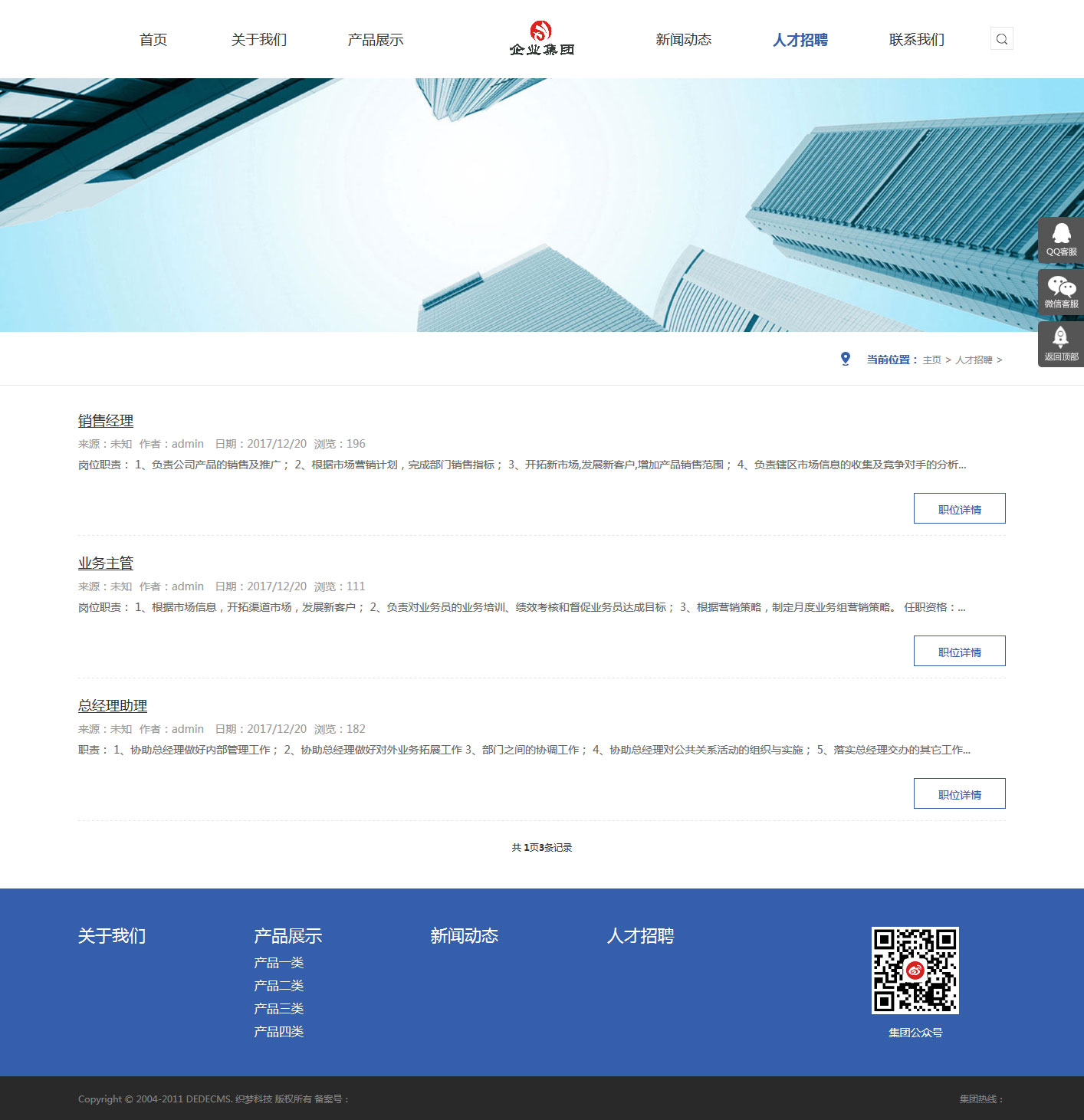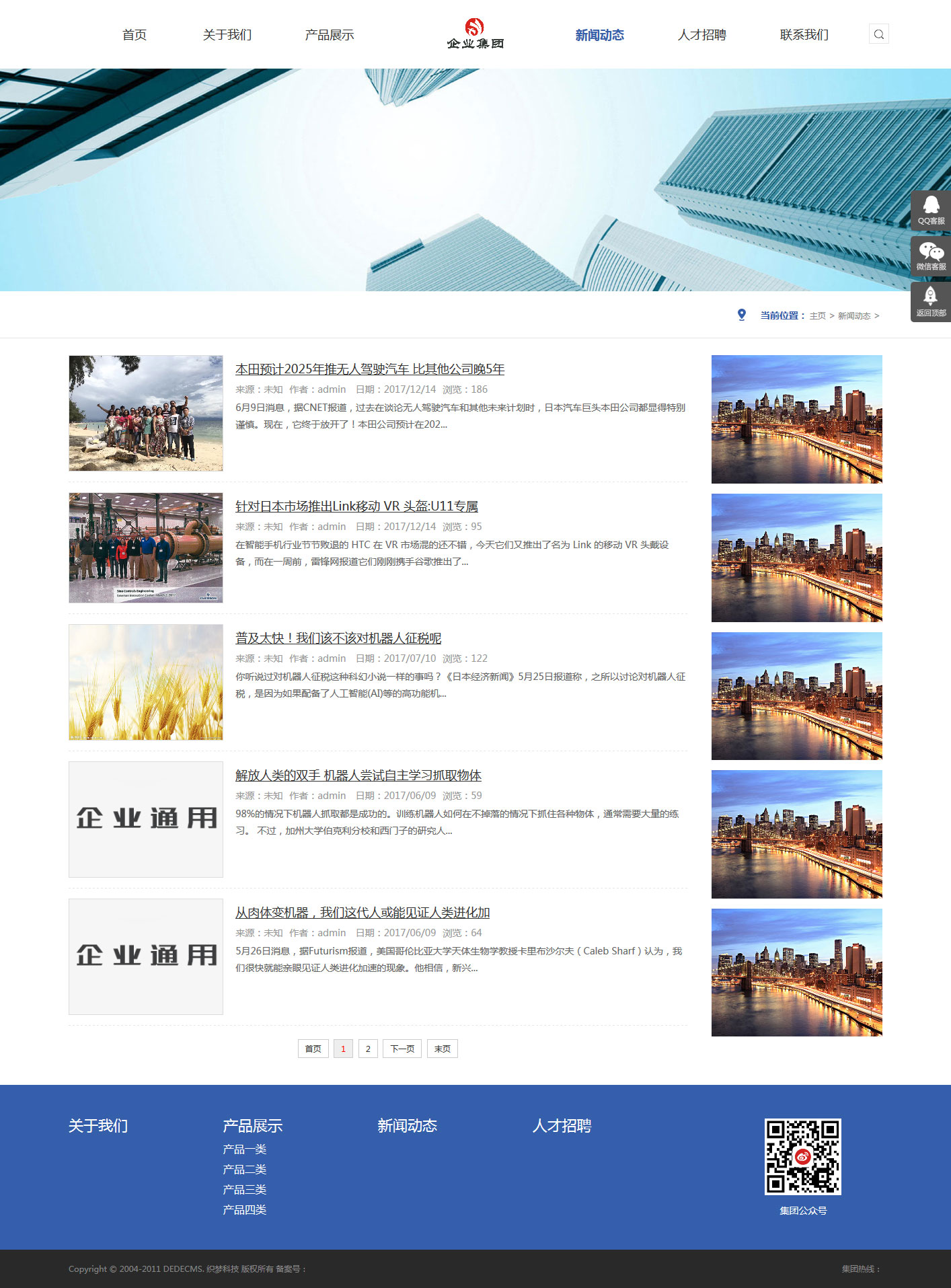 響應式企業集團通用類網站織夢模板,測試完整無錯,兼容主流瀏覽器。支持后臺直接修改網站信息,移動和PC端同一個后臺,數據即時同步,簡單實用。本套模板為UTF8需要GBK可在本站查看編碼轉換教程。