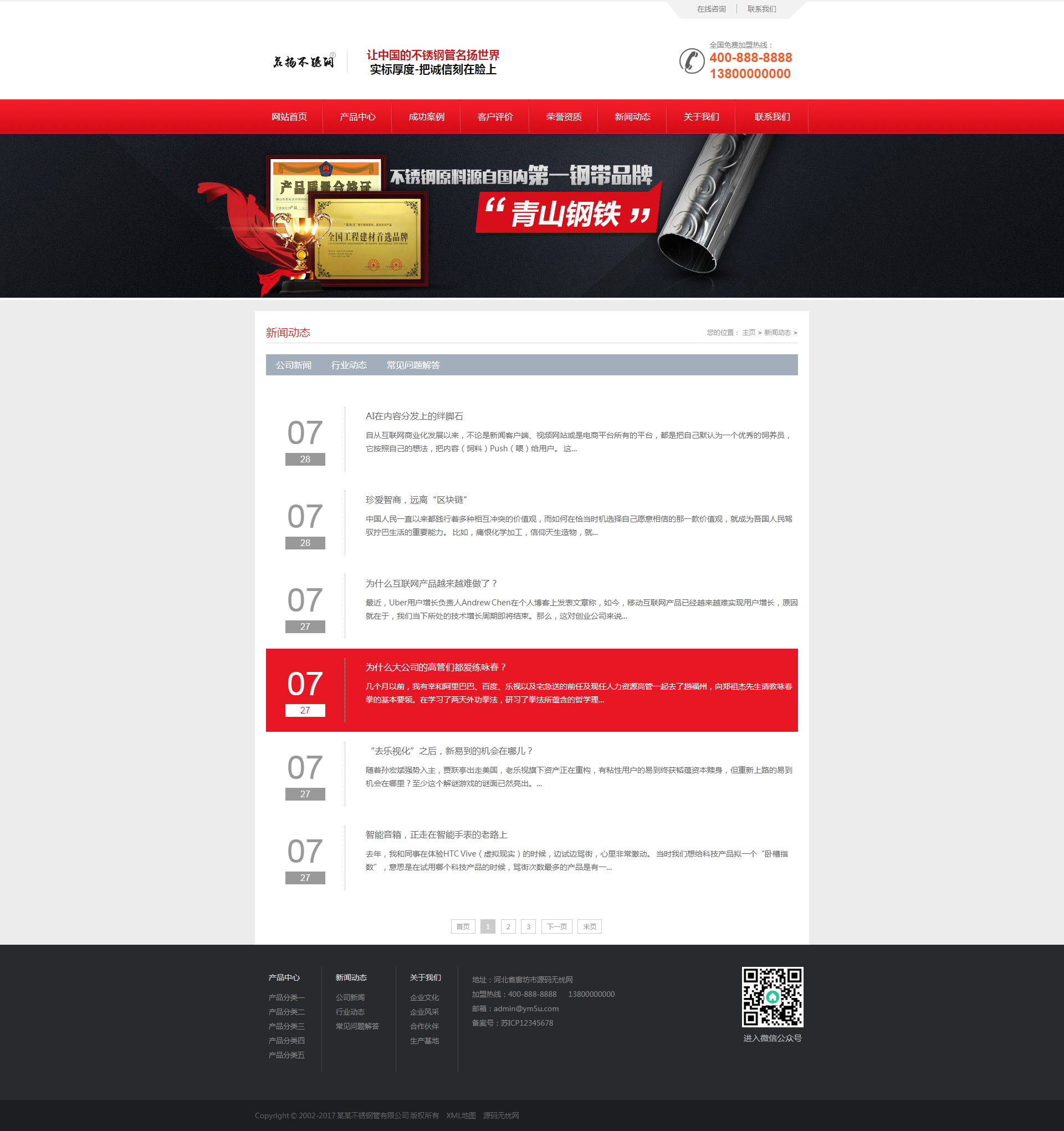 源碼名稱:dedecms營銷型鋼材織夢模板 不銹鋼鋼材鋼管類企業(yè)網(wǎng)站源碼(親測可用)