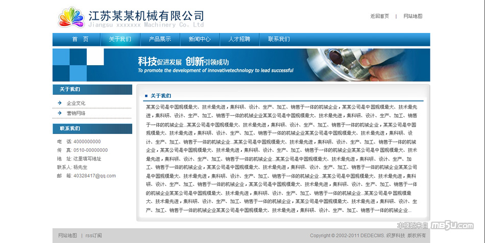 采用織夢5.7utf8內核制作,藍色通用企業模板,適合各類企業網站。