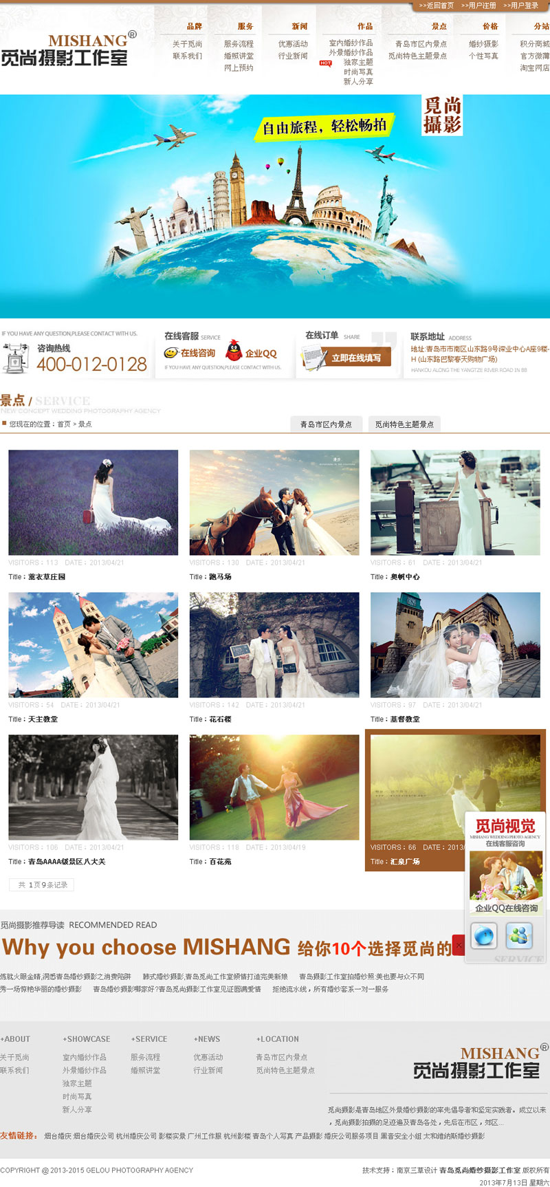 織夢婚紗攝影公司/工作室模板,全標簽調用,帶本人制作時的數據,完全傻瓜式建站,測試完整無錯,兼容所有主流瀏覽器。