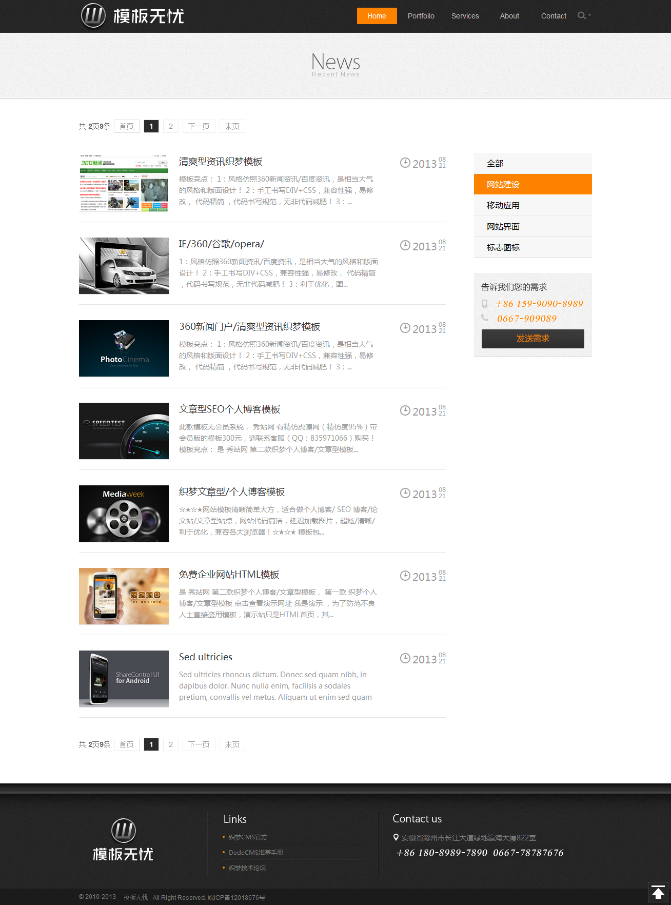 此套模板是一套PC+獨立手機端的的企業模板,相比國外的響應式模板這種組合的網站結構還是挺受我們國人的喜愛的價格:元 點擊:123織夢cms大氣重型機械設備公司