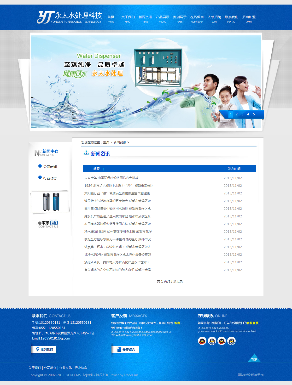 dedecms水處理科技企業(yè)模板(二次開發(fā),織夢整站)